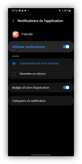 Vérifiez que les notifications de suivi d’activité sont activées.