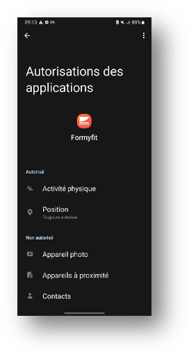 Vérifiez que Formyfit n’est pas dans la liste